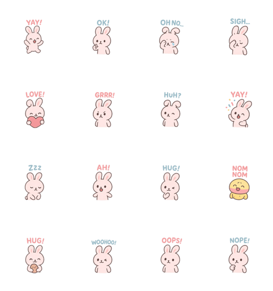 | スタンプ説明 | Add fun to your chats with Puffie the adorable rabbit and Snacko the playful cake! This 16-sticker set shows emotions from happiness, surprise, sleepy, to love. |