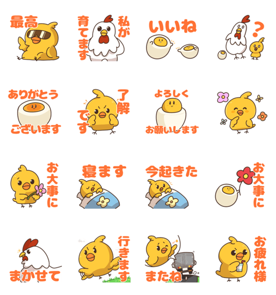 主にヒヨコのスタンプです。たまご好きやニワトリ好きの方もどうぞ!