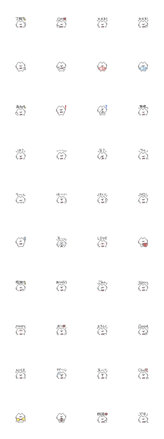 白ネコのあいうえお・・・ってるスタンプ