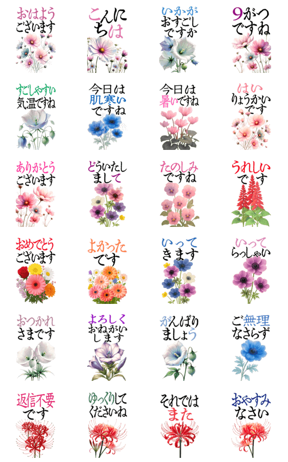9月 秋の花 大きくて見やすい挨拶スタンプ -LINEスタンプマニア