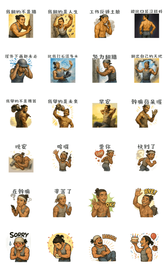 the daily soundtrack. These stickers bring the humor, grit, and real-life moments of stonework to your chats, filled with authentic vibes and craftsman spirit.