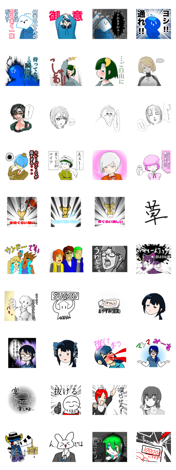 一族のみんなで作ったスタンプです!かなりカオスめ/内輪ノリ多め みんな元気だね!!!