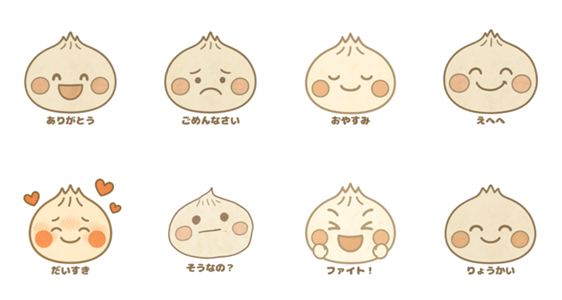 | スタンプ説明 | 肉まん君の可愛いイラストスタンプです。日々のLINEでのやりとりにぴったりな、使いやすいフレーズを揃えました。会話がもっと楽しくなること間違いなし! |