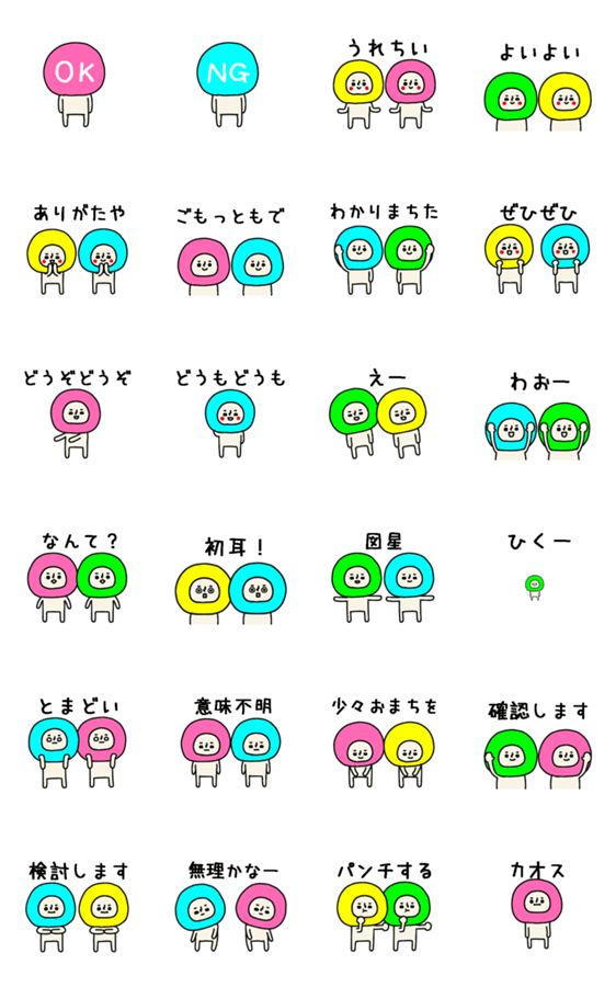 | スタンプ説明 | 【即レス・簡単お返事・あいづち(相槌)に】カラフルでポップな色合いがかわいい、動きもかわいい丸い人たちのアニメーションスタンプです。毎日楽しく使えてお役立ち。 |