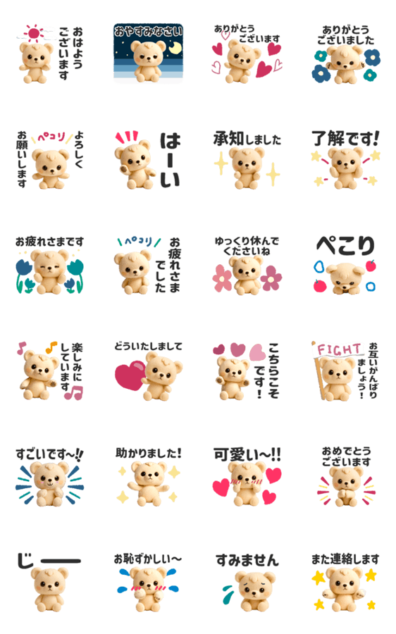 丁寧な敬語が大人から子供まで使いやすい♪幅広い年代の方におすすめです。#テディベア#アニメーション#クマ#熊#定番#シンプル#ゆめかわ#日常#毎日使える#もふもふふわふわ