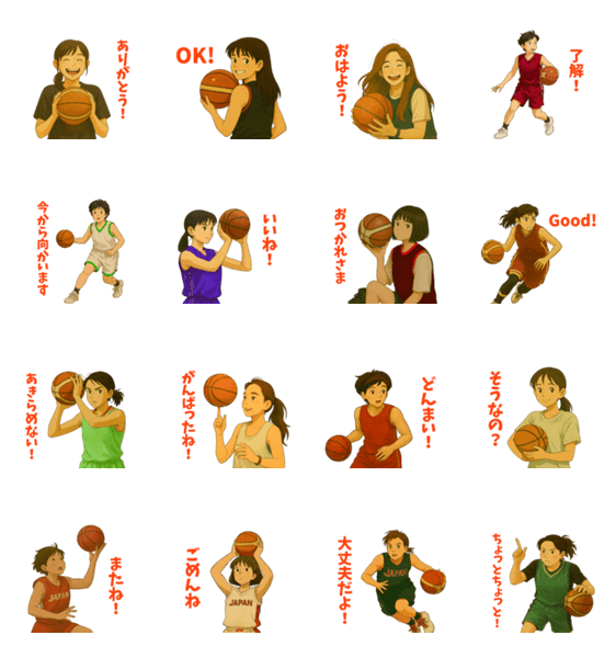 バスケ好きのためのスタンプです。仲間同士でも家族にも使えるおしゃれスタンプ。
