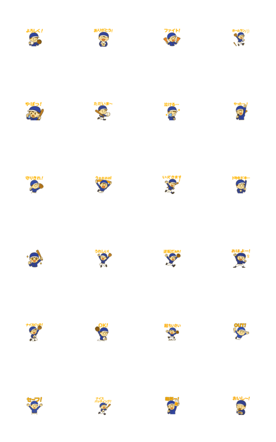 かわいい野球少年がトークを盛り上げます! あいさつや応援、日常会話にぴったりのスタンプが勢ぞろい。毎日楽しく使える実用的なセットです♪