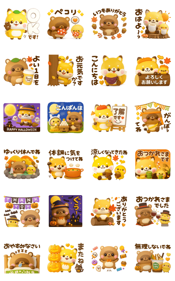 たぬき♡きつね秋満載 -LINEスタンプマニア