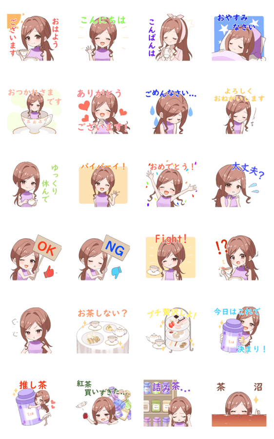 | スタンプ説明 | 紅茶専門YouTube「Miiのお茶会チャンネル」公式スタンプが登場! 紅茶/tea/ヌン活/アフタヌーンティー/お茶会/日常/大人/かわいい/おしゃれ/推し/あいさつ |
