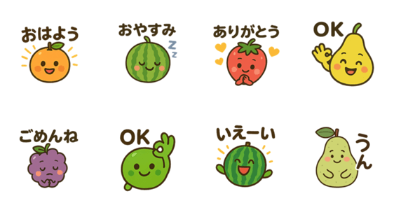 | スタンプ説明 | かわいいフルーツのキャラクターです 毎日使いやすい言葉がいっぱいです |