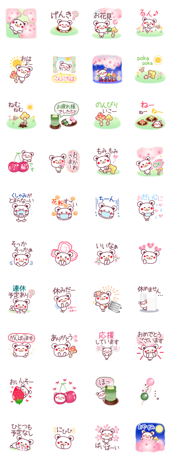 春もLINEの会話を楽しめますように♪初夏、お花見、GW、連休、大活躍してくれそう。さくらんぼ、いちご、お団子、春がいっぱい。大きな文字のチョコくまシリーズ/mittens作