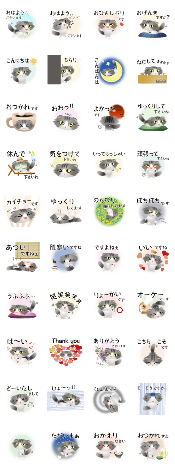 色々な猫8-4 長毛-垂れ耳-サバトラ白 -LINEスタンプマニア