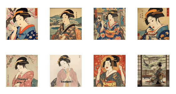 | スタンプ説明 | Add traditional Japanese charm to your messages! Edo kimono beauty sticker make every chat graceful and unique. |