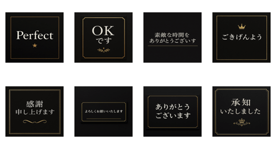 「上質マナー言葉」は、ビジネスや社交の場で使える上品な敬語スタンプ。黒と金を基調とした洗練デザインで、大人の会話に気品を添えます。