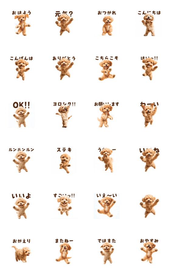 毎日が楽しくなる♪踊る子犬トイプードルのアニメーションスタンプ。楽しい会話や日常のやりとりにぴったり!