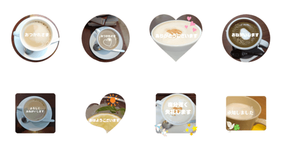 カップ上の世界を楽しんでいただけたら嬉しいです。挨拶などを浮かべて添えました。日常使いしやすいものを集めました。