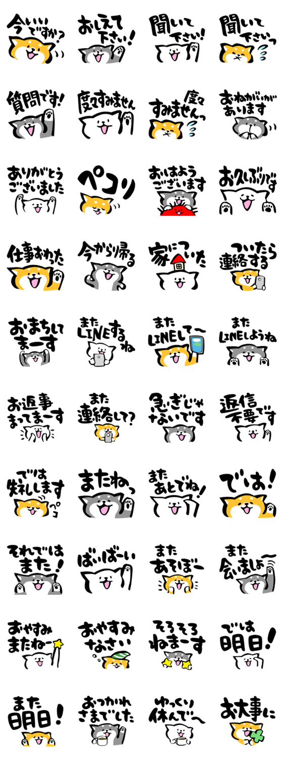 かわいい柴犬のスタンプ。会話の始めと終わりに送るスタンプ。デカ文字/でか文字/筆文字/くっきり/はっきり
