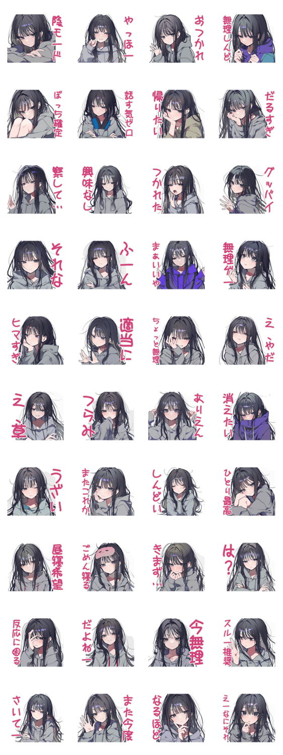 陰キャ女子のネガティブで暗い日常。普段使いにぴったりのイラスト。気分、憂鬱、女子、メッセージ、トーク。