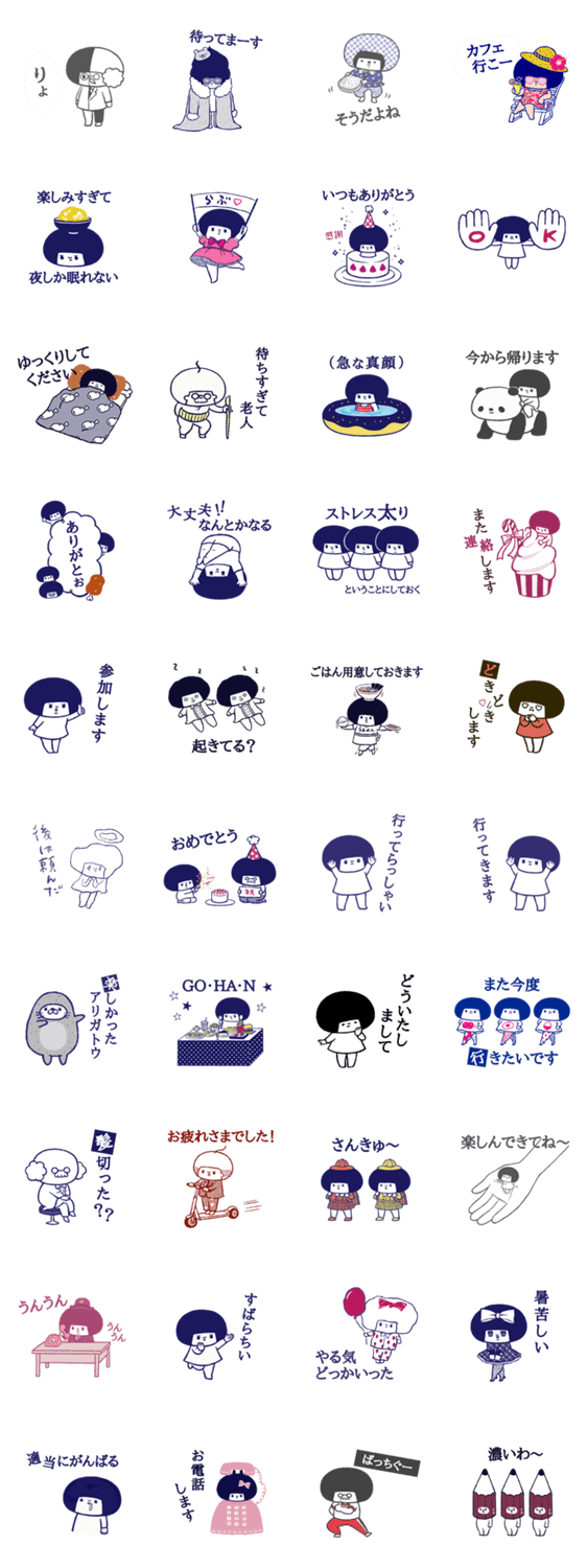 欲しいスタンプのアンケートで集まったものを詰めました! かわいい/日常/オリジナルキャラクター/便利/ネタ/シュール/きもかわ/ゆるかわ/使える/女の子/友達/遊び/挨拶