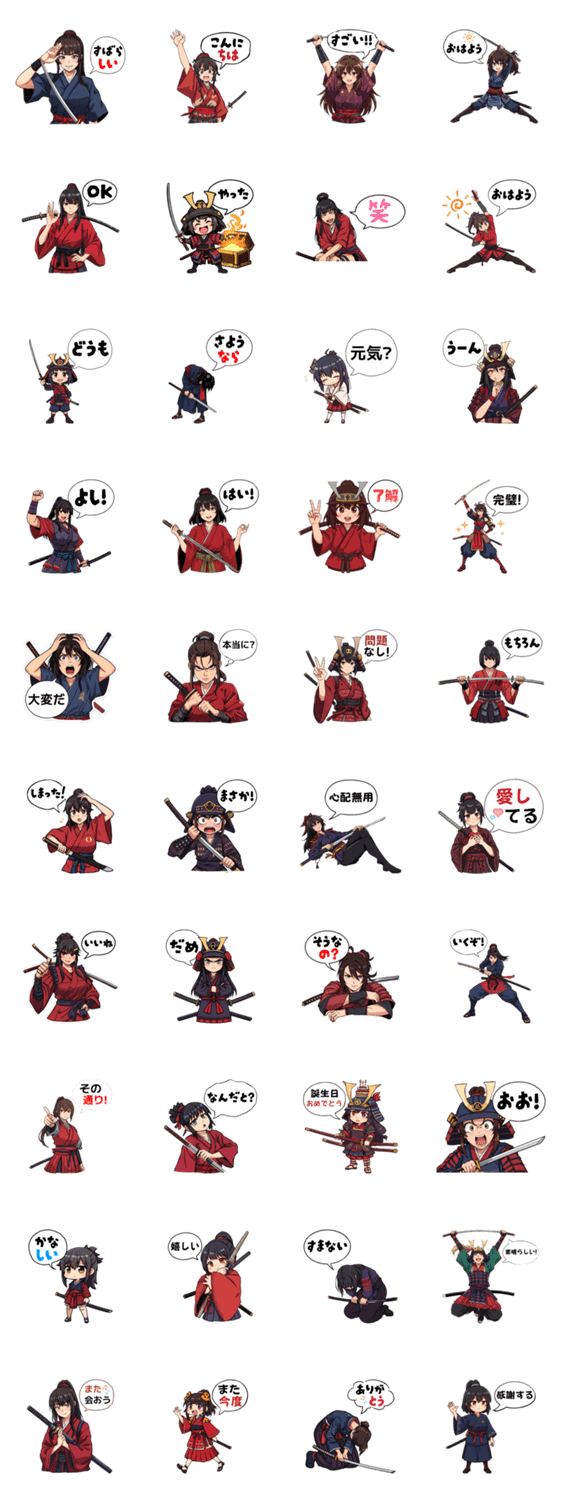 武士道精神を持った少女たちのスタンプ。毎日のやり取りを和風テイストで彩ります!