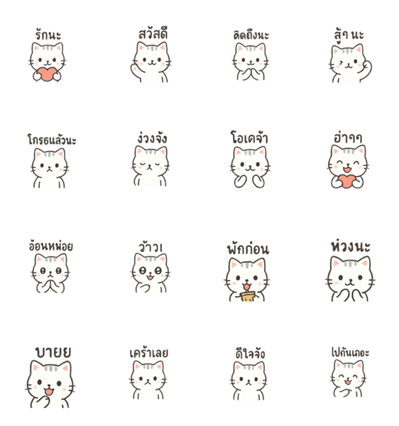白ネコのあいうえお・・・ってるスタンプ