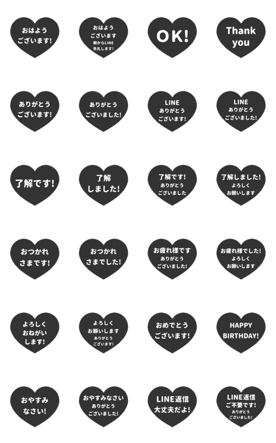 【⬛動くハート✖でか文字の大人シンプルで控えめな挨拶や敬語の定番LINEスタンプ❤️⬛】【大人女子】【丁寧】【ふきだし】【大人可愛い】【あいさつ】【©AIIAIIA】