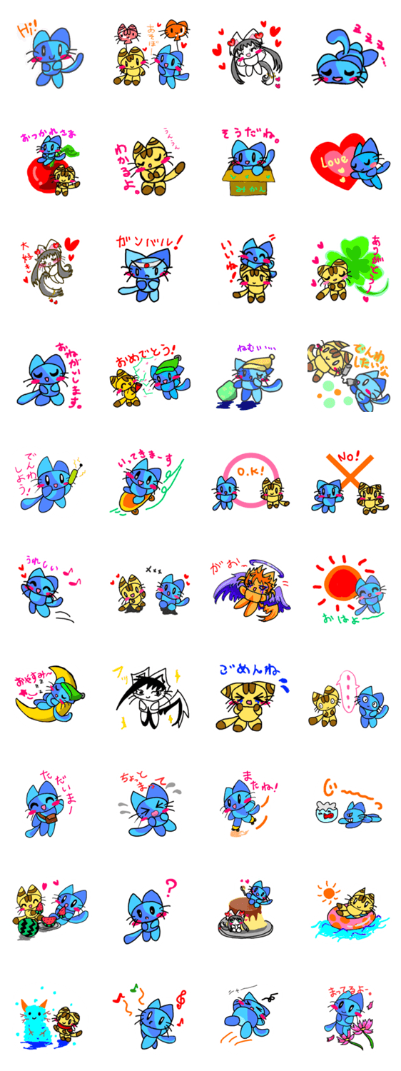 青猫ニャーが主人公の猫のスタンプです。ニャーとそのお友達が、日常的なスタンプに登場です。