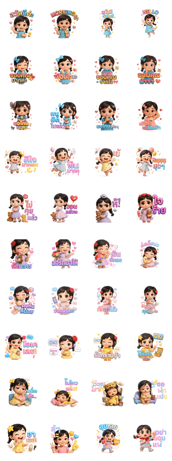 | スタンプ説明 | Cute girl stickers for every mood happy, sad, playful, or loving. Perfect for greetings, thanks, apologies, and daily chats |