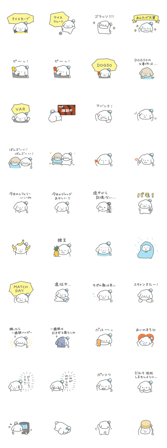 | スタンプ説明 | すっかりガチサポになってきたしろいぬちゃんです。一生懸命応援しています。#しろいぬちゃん (犬/イヌ/サッカー女子/サポーター) |