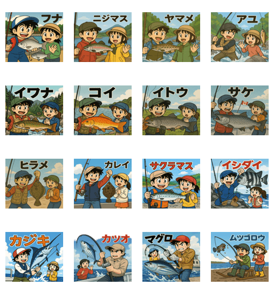 渓流から大海原まで! あの魚、この魚、大物も登場! 釣り好き必見のインパクトスタンプセット