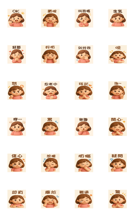 Adorable pink girl expressions to brighten your chats! Playful, funny, and super sweet.