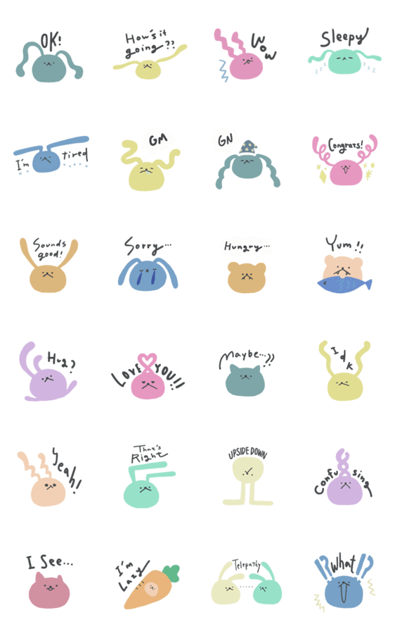 うさぎたろうが毎日の会話をお手伝い!英語フレーズ入りで、日常トークにすぐ使える便利なスタンプです。