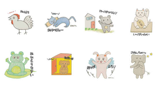 自称絵師が描いた画伯な絵のスタンプです。挨拶編で割りと使いやすいスタンプになったのではないでしょうか?笑 続編をお待ちください。