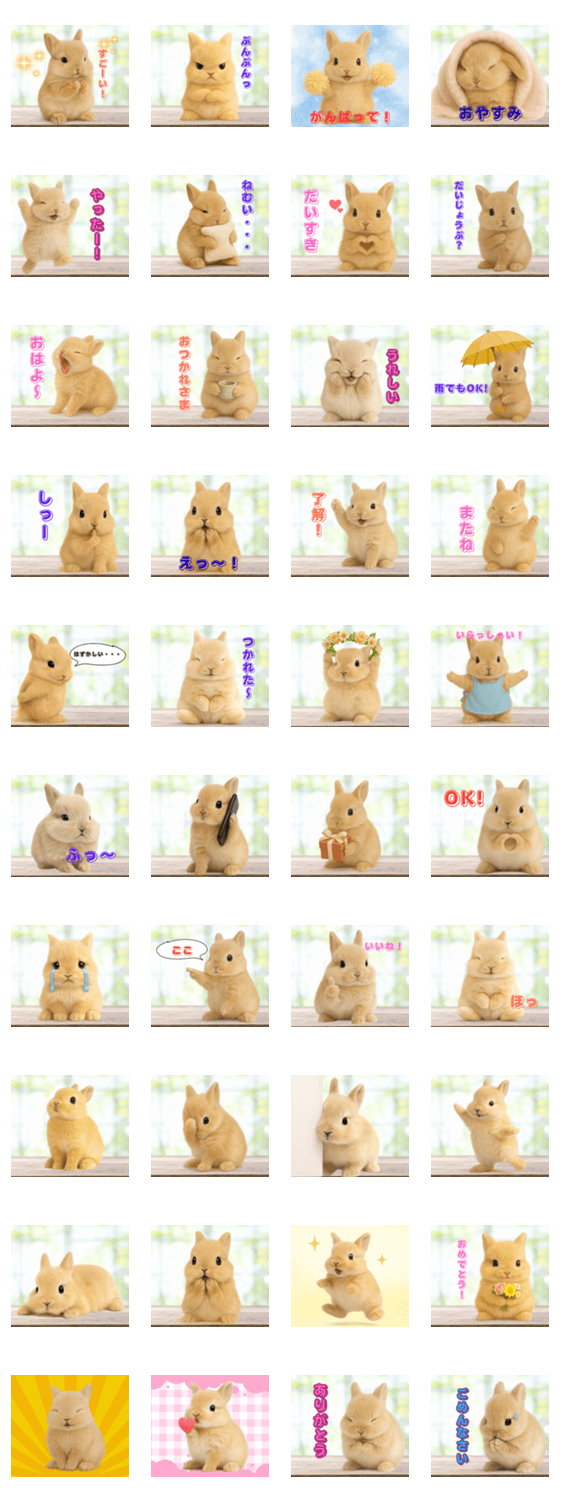 うさちゃんのリアル写真風で柔らかく可愛いキャラクタースタンプ♡「ありがとう」「おやすみ」など日常の挨拶40種類で会話をもっと楽しく!