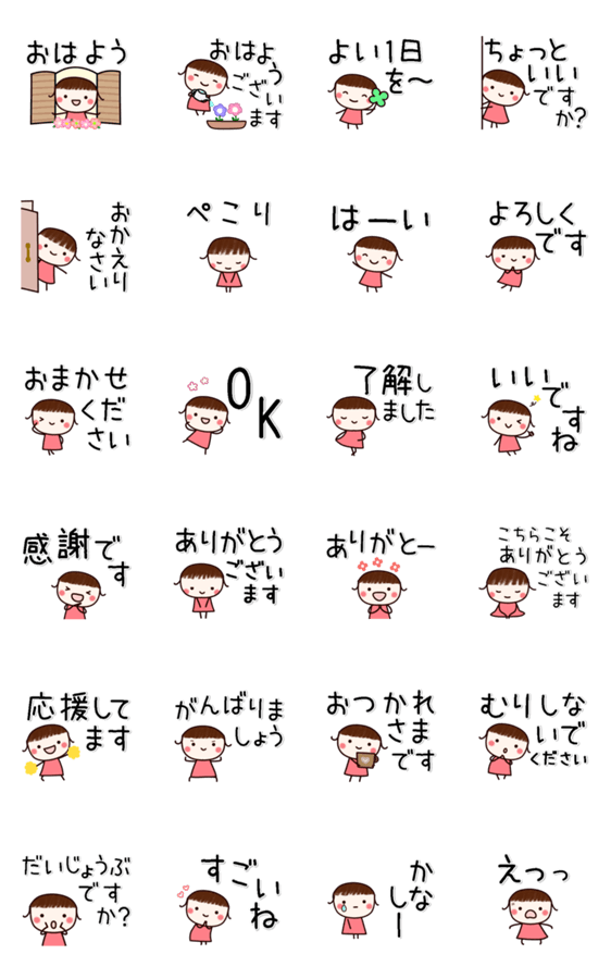 見やすい大きな文字のシンプルスタンプ。デカ文字/でか文字/目にやさしい/シンプル/動く/アニメーション/敬語/日常会話/かわいい/女の子/少女【デコスケのスタンプ】