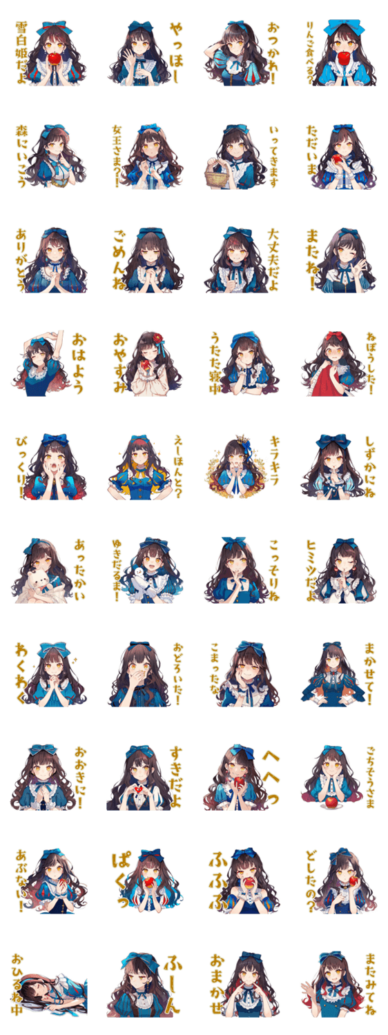 雪白姫が童話の世界で使える美麗な姫スタンプ。メルヘン/挨拶/かわいい/女の子/魔法