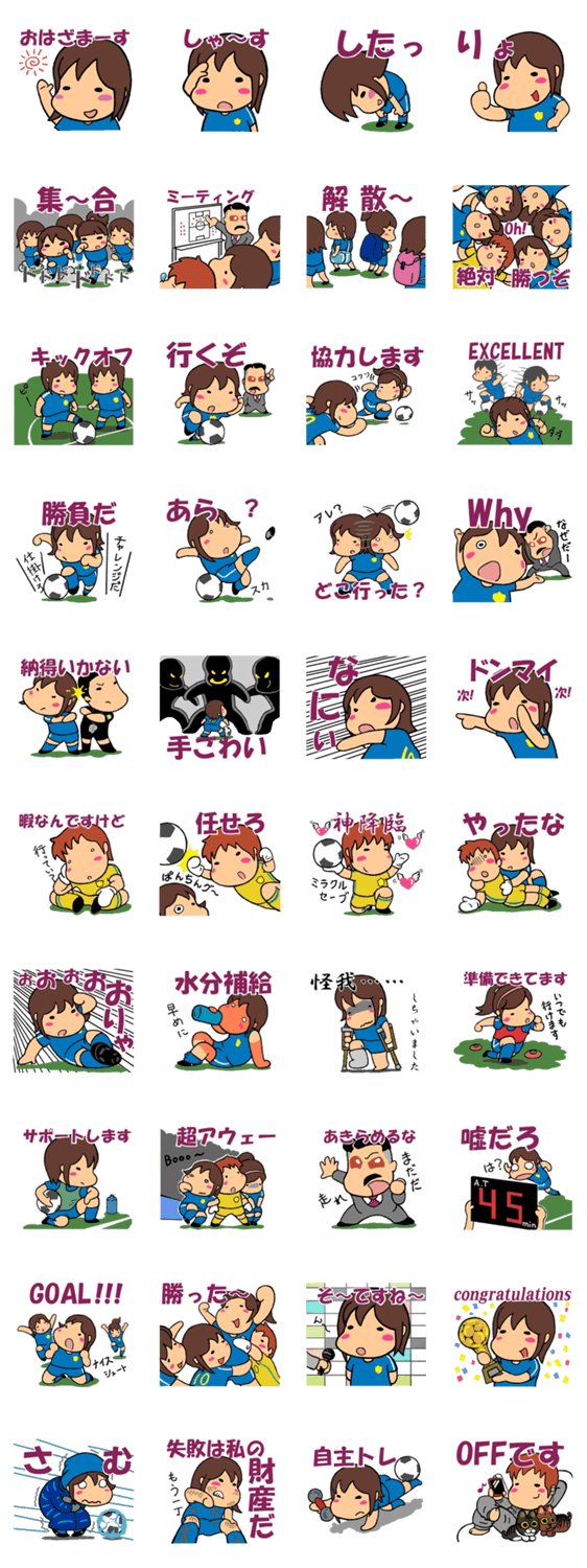 | スタンプ説明 | 世界を目指し、夢見る未来ある女子サッカースタンプです。 |