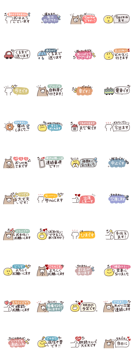 連絡待ち合わせに1つあると便利なスタンプです。シンプル/かわいい/大人可愛い/くすみ/毎日使える/ふんわり/ゆる/吹き出し/スマイル/くま/長文/省スペース