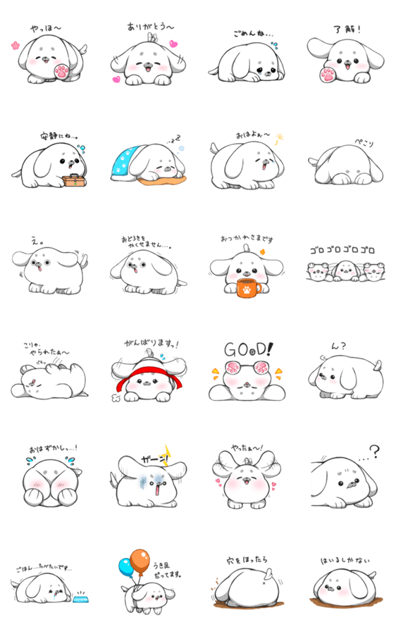 アザラシみたいなわんこ。略して、あざわんこのスタンプです!