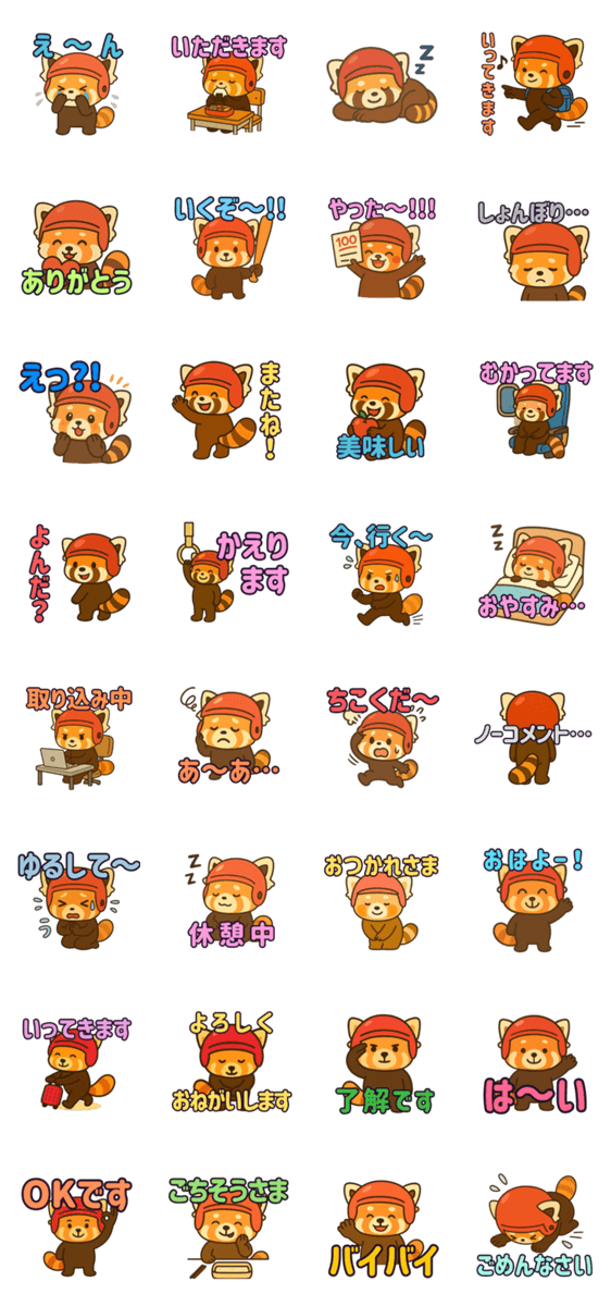 赤い野球のヘルメットをかぶったレッサーパンダの男の子、レッサーくんのスタンプ。