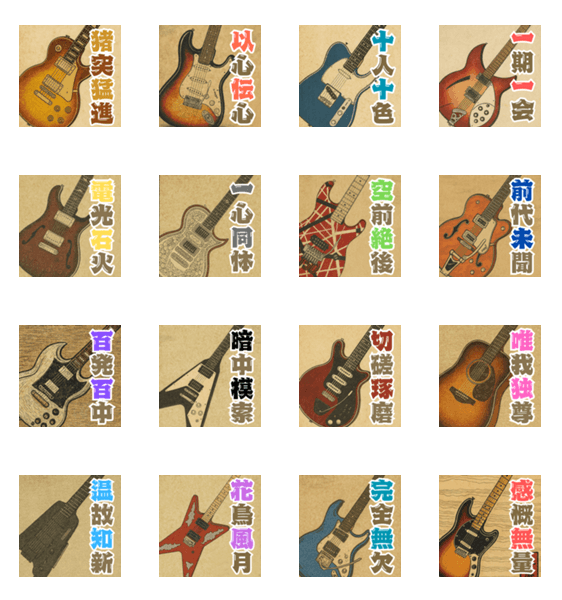 Ukiyo-e Guitar yojijyukugo -LINEスタンプマニア