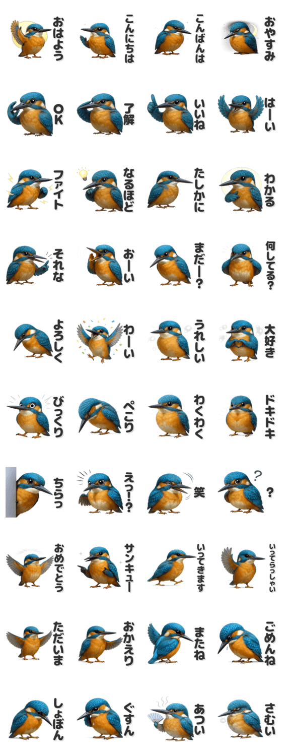 カワセミのかわいい日常スタンプです。/シンプル/挨拶/動物/大人/カラフル/スマイル/癒し/鳥/友達/おすすめ/家族/人気/楽しい