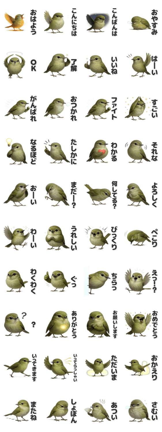 可愛いウグイスが日常を彩るスタンプです。/かわいい/シンプル/癒し/ゆるかわ/動物/おしゃれ/使いやすい/鳥/ほんわか/ほっこり
