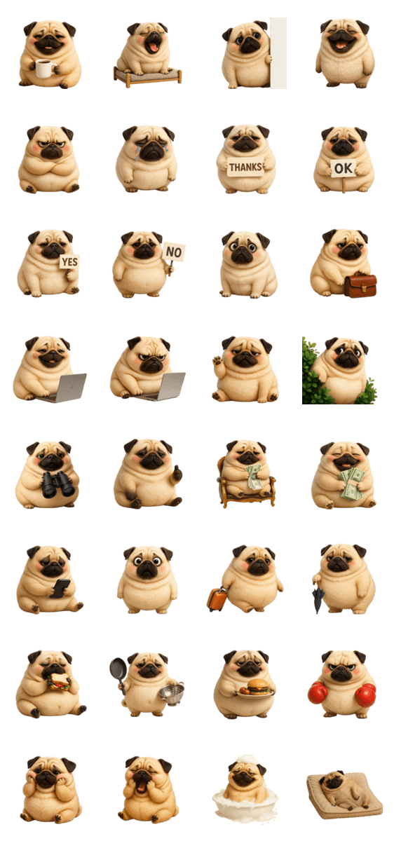Chubby Pug Tuatung (No text) -LINEスタンプマニア