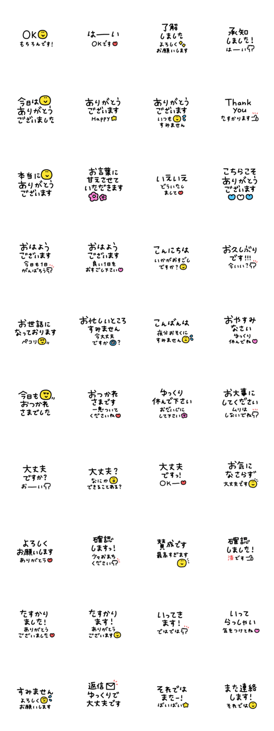 一つあると便利な手書きの長文メッセージスタンプです。 あいさつ/手書き/スマイル/癖字/シンプル/長文