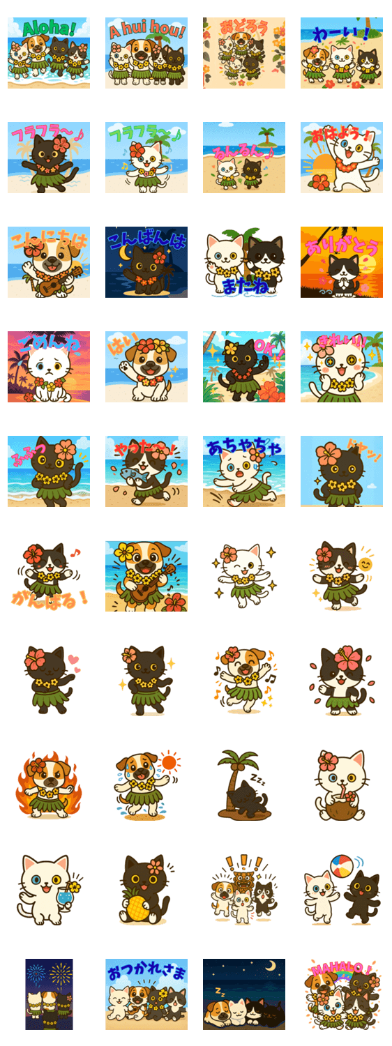 犬、白猫、黒猫 フラダンス、南国 -LINEスタンプマニア