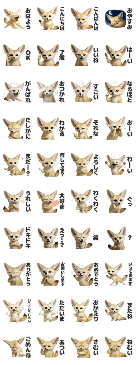 大きな耳が愛らしいフェネックのスタンプです。/シンプル/日常/ゆるい/使いやすい/毎日/動物/癒し/友達/家族/楽しい/笑顔/ゆるかわ