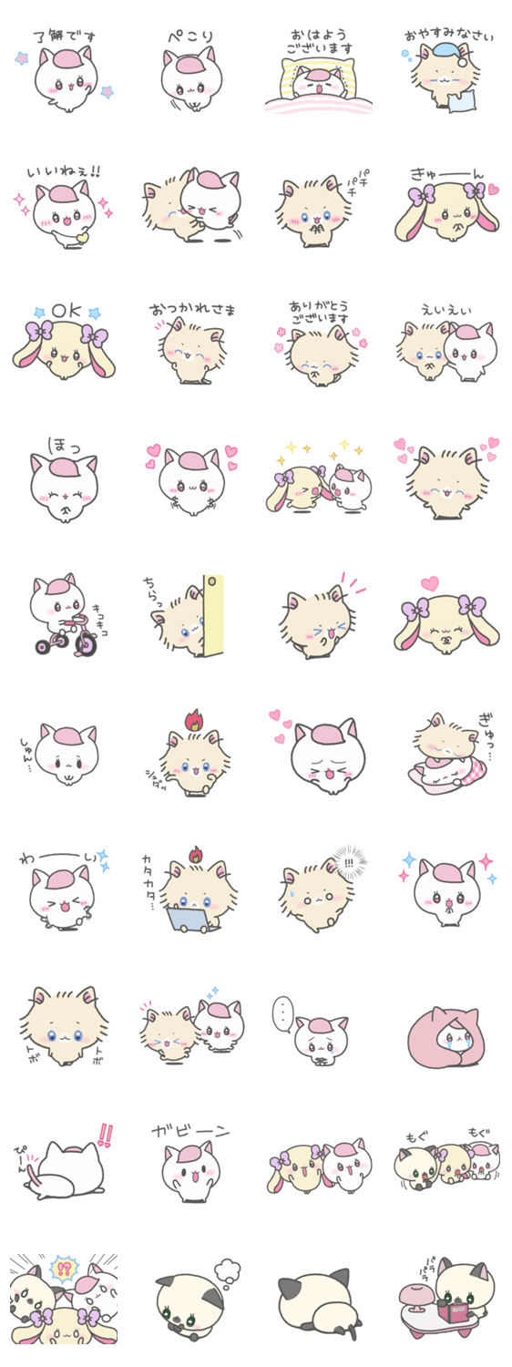 おちゃめな子猫“ねこめろち”となかまたちのかわいいスタンプ