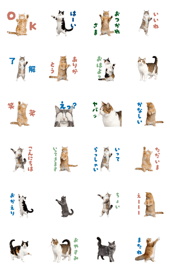 うごく可愛いネコの写真スタンプ。毎日使いやすい返事挨拶使える定番面白いネタゆるいだるい。おどるダンス推しねこ科動物大人男子女子家族先輩友達のプレゼントにおすすめ