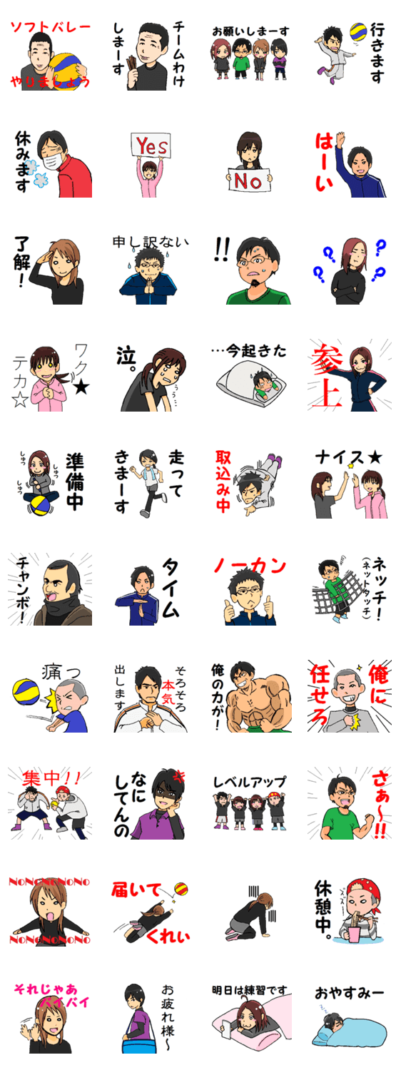 ソフトバレーのあるあるをスタンプにしました。日常会話もソフトバレー用語で会話してみて下さい。
